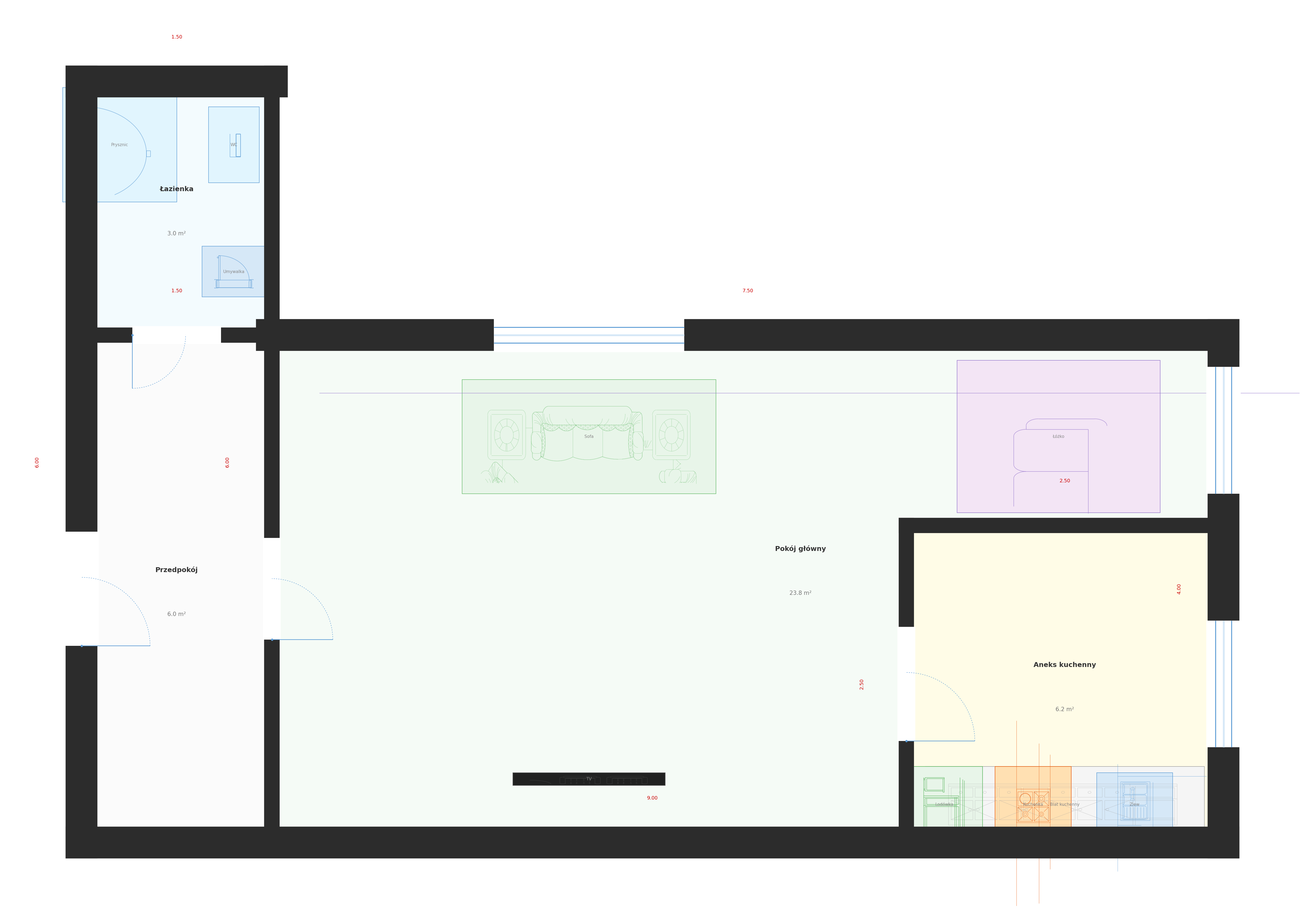 | Pokój główny | living_room | 23.8 m² | 3 | 1 | 2 |
